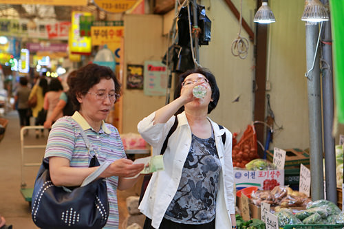 今回訪れた市場は今まで行ったことがある場所でしたが、やはり何度行っても飽きないですね。夕飯の食材を買っていたり、つまみ食いをしていたり、おもしろい商品を選んでいたり…市場でものを買っている人を観察するだけでも、韓国人の素朴な姿が見られます。