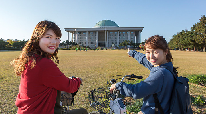 今回は地下鉄5号線汝矣(ヨイ)ナル駅4番出口近くのレンタルスポットで自転車をレンタルし、複合ショッピング施設の「IFC(アイエフシー)モール」やテレビ局「KBS」、「国会議事堂」、「漢江(ハンガン)公園」と一周してきました。サイクリングだけでなくショッピングに観光、のんびりとお散歩まで楽しめる贅沢なコース♪これこそ歩くと遠いけれど、バスに乗ると交通費がかかってしまうのでちょっと…という方にオススメです。