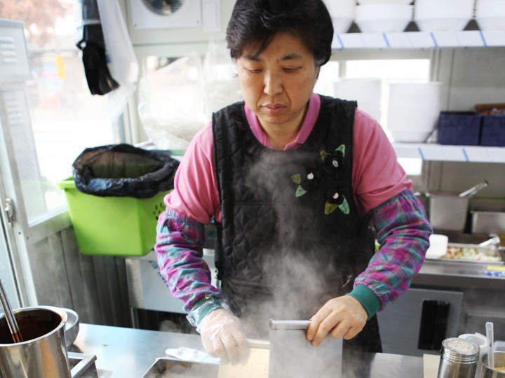 繁華街やイベントでの屋台と違って、食事として利用するお客さんの多い鷺梁津屋台通りでは、他の屋台では見られない細かなサービスがあります。