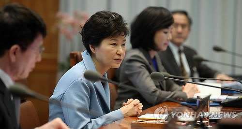 首席秘書官会議で発言する朴大統領=6日、ソウル(聯合ニュース)