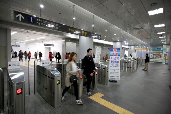 仁川(インチョン)空港鉄道(AREX)ソウル駅から地下鉄1、4号線に簡単に乗り換えることのできる地下乗り換え通路の開通で、仁川空港や金浦空港などの空港に到着した後、明洞(ミョンドン)、東大門(トンデムン)、鍾路(チョンノ)などソウル都心に移動するのがとても便利になった。初期にはわかりにくかった案内標示もよく整備され、外国人も特に問題なく乗り換え通路を利用している。