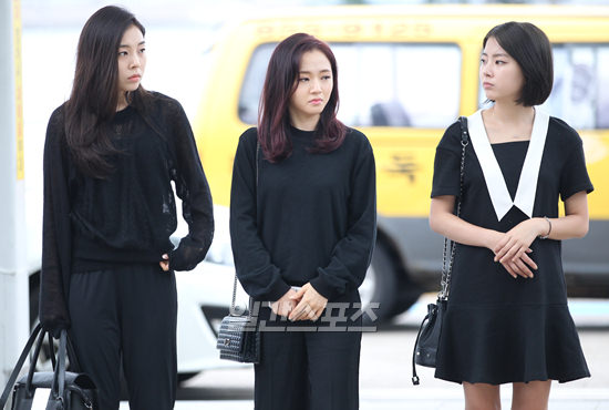 黒の落ち着いた服装で出国ゲートに姿を見せたメンバーのアシュレー、ソジョン、ジュニは、表情には悲しみがにじみ、少しやつれた様子だった。