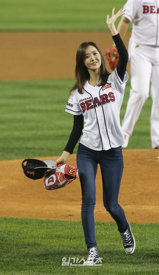 少女時代ユナ、可愛さ満点の始球式で選手を応援