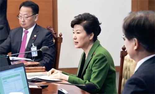 朴槿恵(パク・クネ)大統領が19日、青瓦台(チョンワデ、大統領府)で開かれた閣僚会議で「民生救済立法要求1000万人署名運動」に関して「昨日(18日)業務報告を終えて帰る途中に署名をした。よっぽどでなければこの真冬の厳しい寒さの中で経済人や国民が街中に出てきたか」と話した。(写真=青瓦台写真記者団)