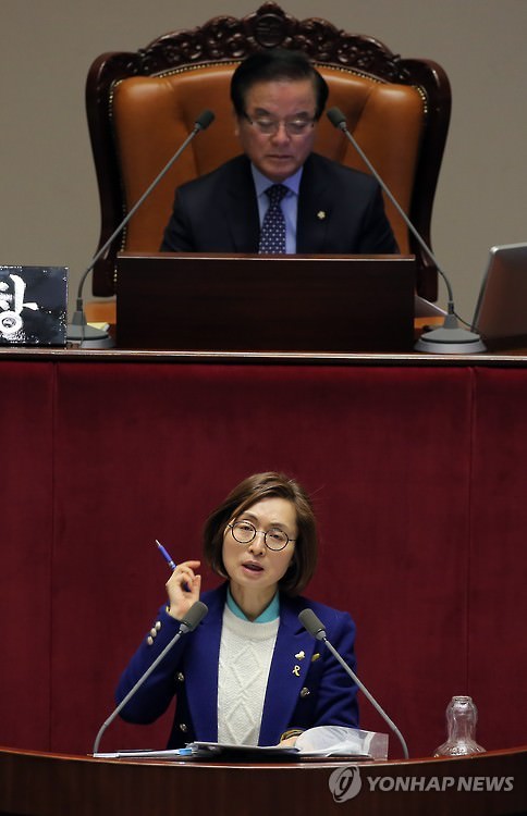 【ソウル聯合ニュース】韓国最大野党、共に民主党は情報機関の国会情報院(国情院)の捜査権限拡大を柱とするテロ防止法案の成立を阻止するため、23日午後から長時間の演説で議事を引き延ばす「フィリバスター」で抵抗した。3人目に壇上に立った同党の殷秀美(ウン・スミ)国会議員は24日午前2時半から同日午後0時48分まで演説を行い、韓国国会史上最長の演説時間となった。
