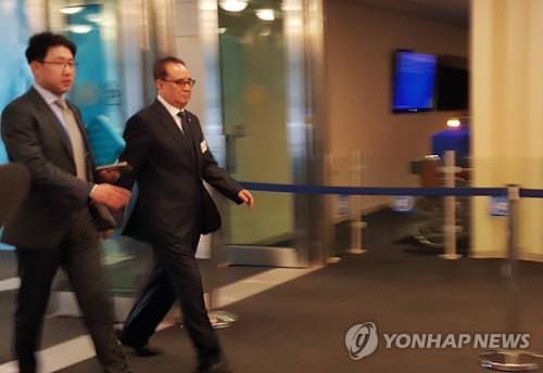 国連本部に入る李氏(右)=21日、ニューヨーク(聯合ニュース)