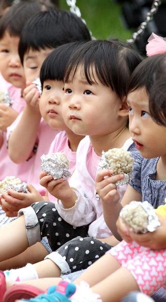 【写真】子供たち、麦おにぎりで韓国戦争を体験