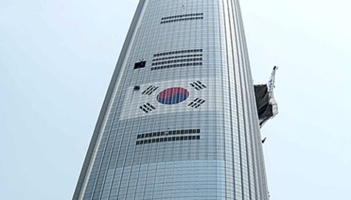 ロッテワールドタワー外壁の超大型太極旗、結局は撤去