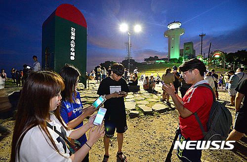 蔚山蔚州郡の艮絶串で「ポケモンGO」ができることが伝えられ、週末である23日、全国からやってきた訪問客が夜遅くまでゲームを楽しんでいる。