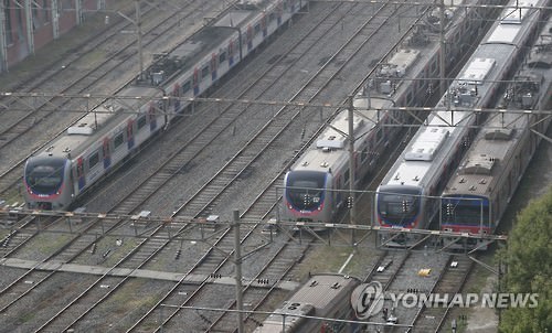 ソウル市内の九老車両基地に停車している列車=(聯合ニュース)