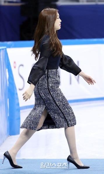 「フィギュア女王」キム・ヨナが8日、江陵(カンヌン)アイスアリーナで開かれた「KB金融コリア・フィギュアスケート・チャンピオンシップ2017」(第71回全国男女フィギュアスケート総合選手権大会)授賞式で女子シングルの受賞者を祝うために壇上へ向かっている。