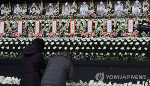 合同焼香所で犠牲者の冥福を祈る市民=25日、堤川(聯合ニュース)