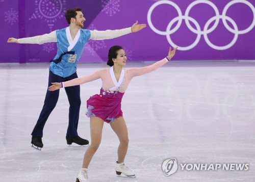 【ソウル聯合ニュース】平昌冬季五輪第12日の20日、フィギュアスケート・アイスダンスのフリーが行われ、韓国のミン・ユラ、アレクサンダー・ガメリン組は韓服(韓国伝統衣装)をモチーフにした衣装で臨んだ。