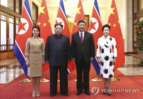 習近平国家主席夫妻(右)と金正恩委員長夫妻=(新華社通信/AP=聯合ニュース)
