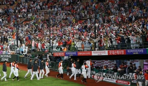 釜山・社稷野球場で応援するロッテジャイアンツのファン(資料写真)=(聯合ニュース)