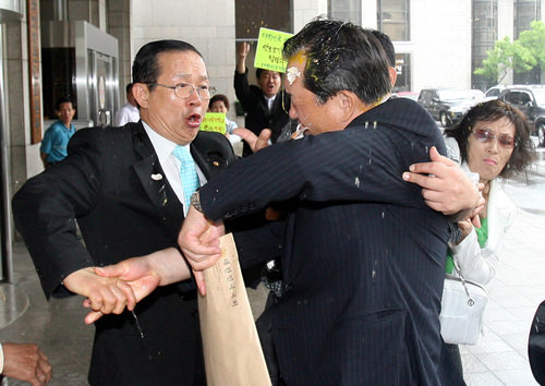 | ホーム > 韓国HOTニュース > 政治 > タマゴを投げつけられた鄭亨根議員 |