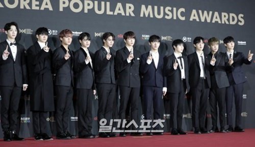男性グループのWanna One(ワナワン)メンバーが授賞式を控えてレッドカーペット行事に参加している。