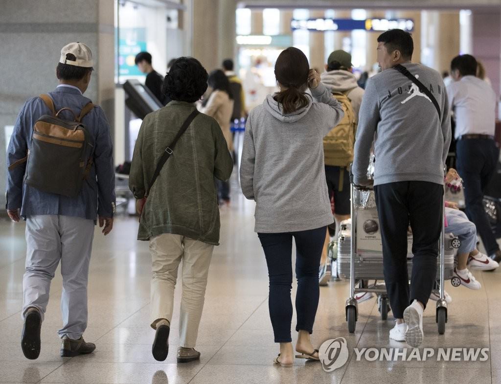 旅行から戻った家族。仁川空港で撮影(資料写真)=(聯合ニュース)