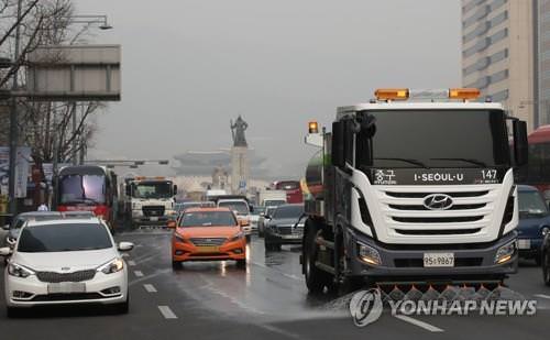 水で道路を洗う清掃車(資料写真)=(聯合ニュース)