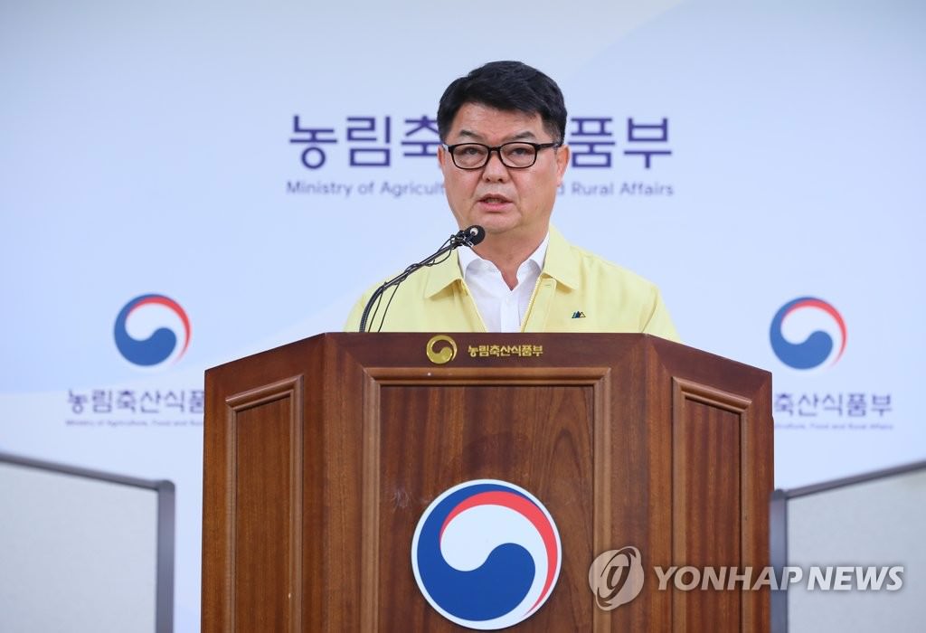 特別管理地域の指定に関する説明を行う農林畜産食品部の防疫政策局長=31日、世宗(聯合ニュース)