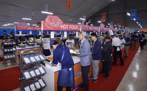 洋食50~60種類、韓国料理20~30種類、イスラム教の戒律に沿って調理されたハラルフード約10種類、中華料理5~6種類など、毎食100種類以上のメニューが用意されている。