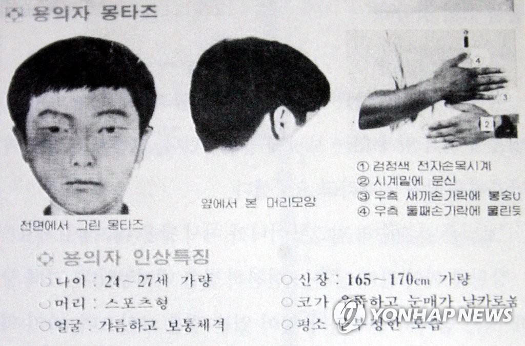 事件当時に公開された容疑者の似顔絵や特徴(資料写真)=(聯合ニュース)