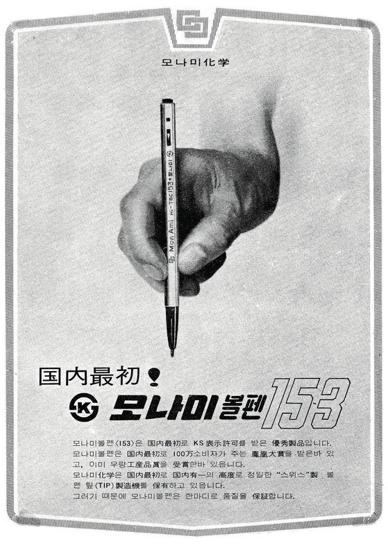 モナミのシグネチャー製品「153ボールペン」はモナミの創業者ソン・サムソク会長の好奇心から始まった。1962年に国内で開催された国際産業博覧会に参加したソン会長はインクをつけずに書くことができる筆記具を初めて目にした。1960年代の大韓民国はインクをつけて書く万年筆タイプの筆記具を主に使用していた時代だ。