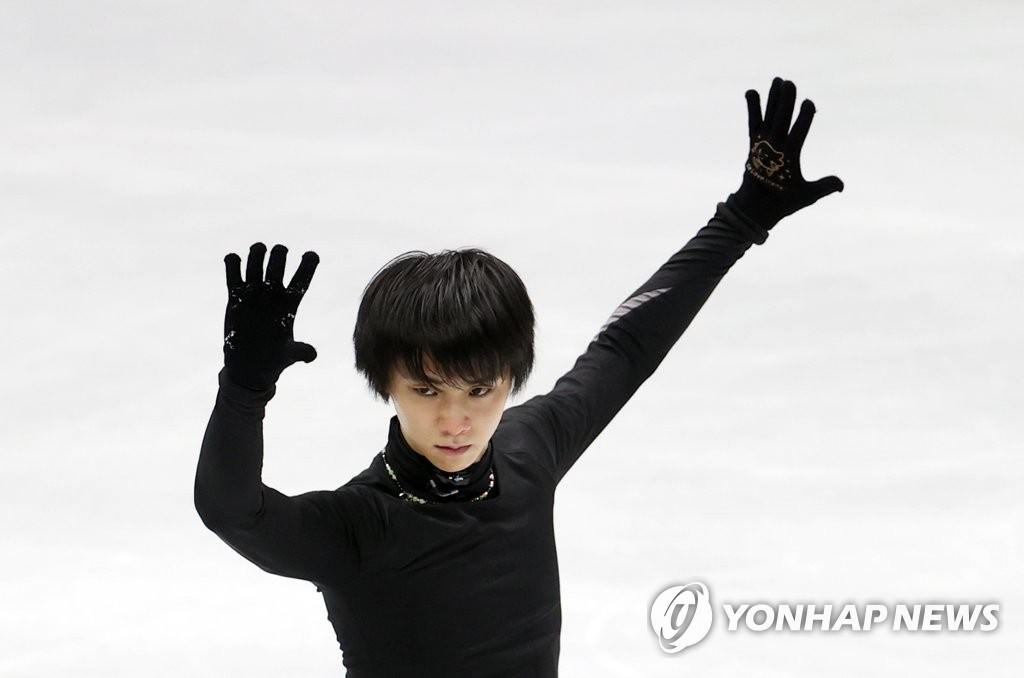 四大陸選手権に出場する羽生は会場のソウル・木洞アイスリンクで行われた公式練習に参加し最終調整を行った=5日、ソウル(聯合ニュース)