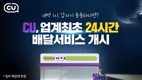 CUはこれまで午前11時から午後11時までこのサービスを運営してきたが、4月からは深夜時間帯にも最低注文金額(1万ウォン=約880円=)と配達料(3000ウォン)のどちらも割増料金なしでサービスを利用できる。