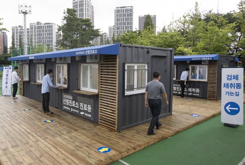 コンテナを利用して設置された検査所(同社提供)=(聯合ニュース)≪転載・転用禁止≫