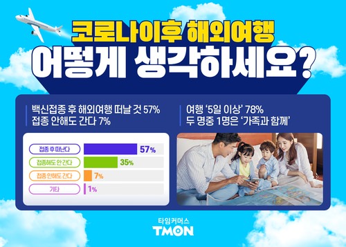 インターネット通販のティーモンが顧客1800人を対象に新型コロナウイルスワクチンの接種が来年可能になるとの前提で海外旅行の意向についてアンケートを実施した(同社提供)=(聯合ニュース)≪転載・転用禁止≫
