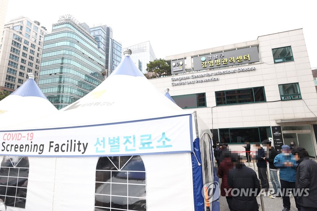 ソウル市内の保健所に設置された新型コロナウイルス検査を行う専用診療所=(聯合ニュース)