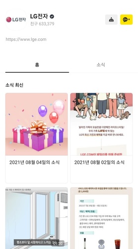 LG電子のカカオトークチャンネル(カカオトークの画面から)=(聯合ニュース)≪転載・転用禁止≫