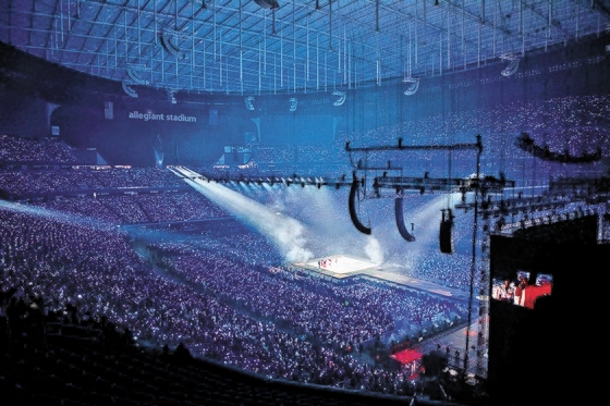 8日と9日相次ぎ開かれたBTSのラスベガスでの初回コンサートにはそれぞれ5万人の観客がアレジアント・スタジアムを満たして声をあげた。「PERMISSION TO DANCE ON STAGE – Las Vegas」コンサートは15、16日まで続く。[写真 ハイブ]