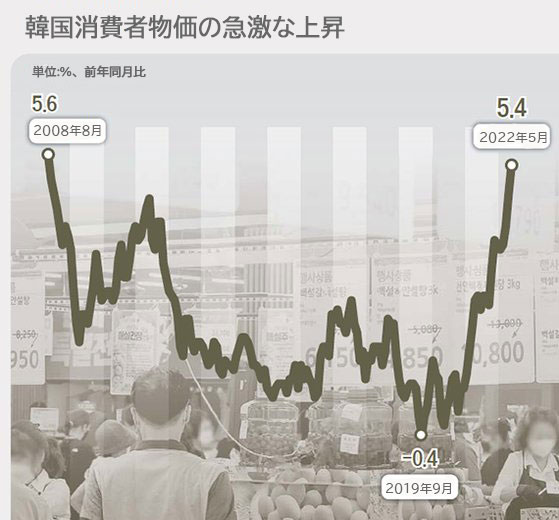 5月の消費者物価5.4%上昇 13年9カ月ぶり高水準=韓国
