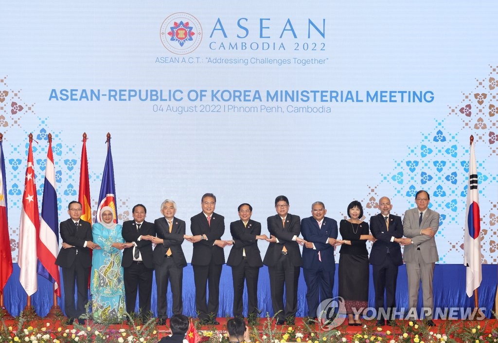 昨年8月にカンボジア・プノンペンで開催されたASEAN関連外相会議に出席した各国の外相=(聯合ニュース)