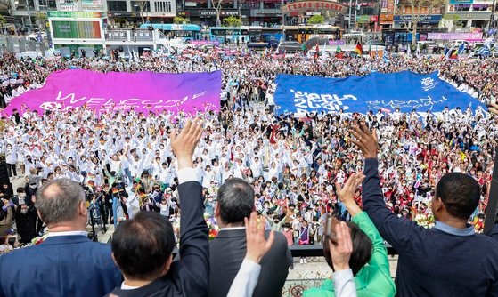 釜山駅で市民5500人「ウェルカム」歓迎…万博調査団「ポップスターになったようだ」