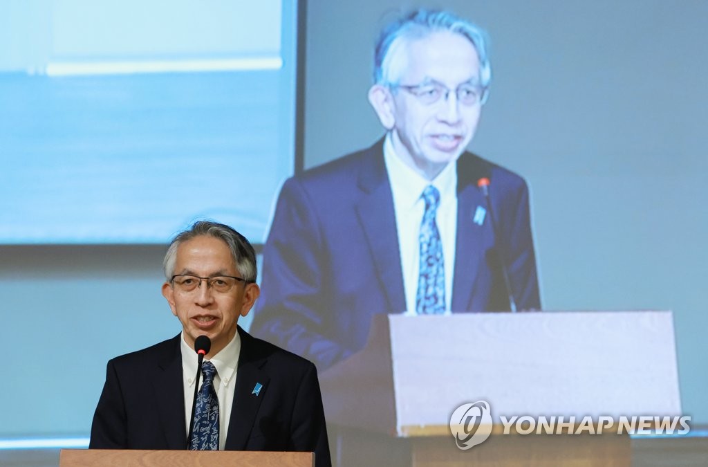 韓日戦略フォーラムで祝辞を述べる相星大使=17日、ソウル(聯合ニュース)