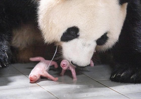 韓国の人気テーマパーク「龍仁(ヨンイン)エバーランド」でメスの双子ジャイアントパンダが誕生した。