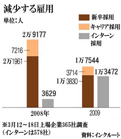 正社員採用40%減りインターンは4倍に