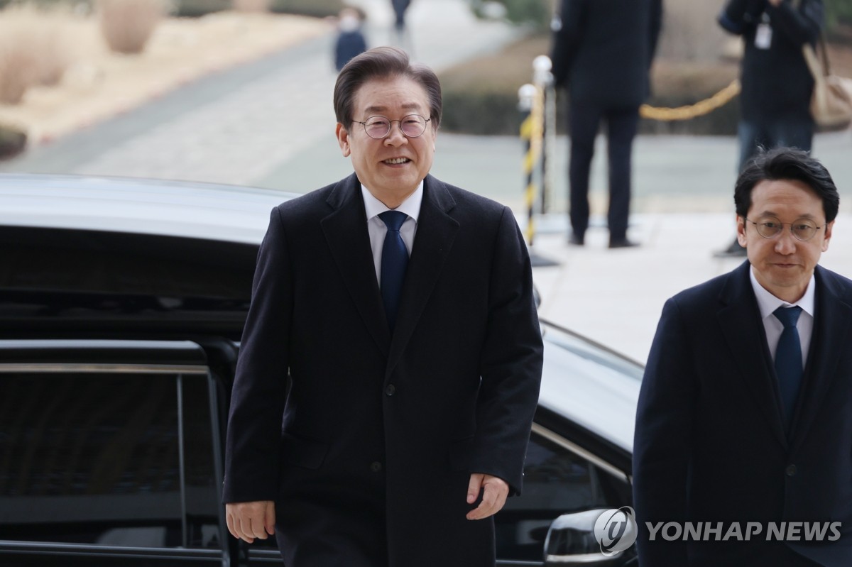 国会に入る共に民主党の李在明代表=17日、ソウル(聯合ニュース)