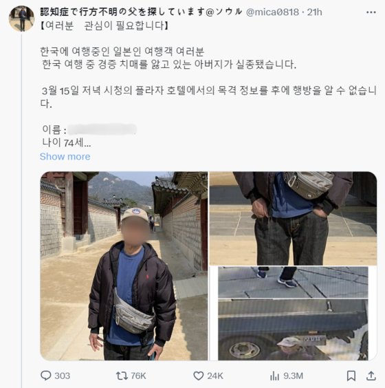 「認知症の父、韓国旅行中に行方不明になりました」…2日後に起きた奇跡=韓国