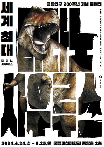 韓国の国立果川科学館は3日、恐竜研究200年を記念し、特別展「世界最大ティラノサウルス」を24日から8月25日まで開催すると発表した。