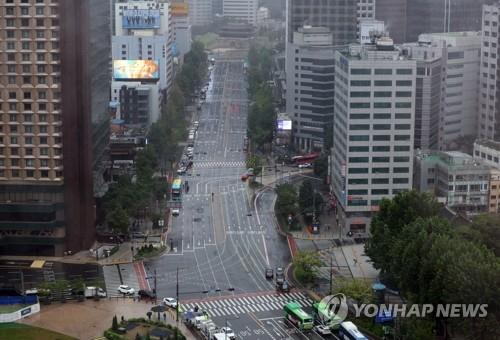 2023年8月23日、空襲を想定した民防衛訓練が実施され、ソウル都心で交通規制が行われている=(聯合ニュース)
