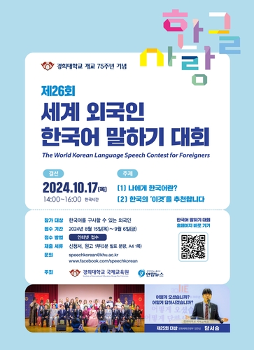 韓国の慶熙大国際教育院は23日、外国人が韓国語の実力を競う「第26回世界外国人韓国語スピーチ大会」の参加者を募集すると発表した。聯合ニュースとの共催。