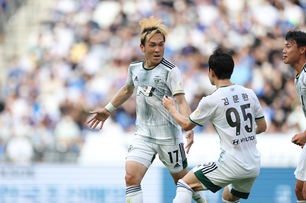 Kリーグ1の全北現代モータースで活躍していたころの邦本選手(韓国プロサッカー連盟提供)=(聯合ニュース)≪転載・転用禁止≫