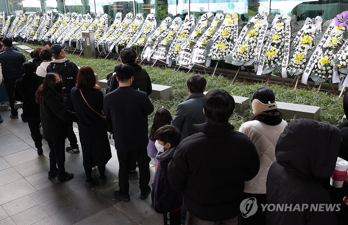 務案国際空港に設置された焼香所を訪れた人々=1日、務案(聯合ニュース)