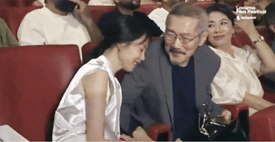スイス国際映画祭でホン・サンス監督の肩にもたれている女優キム・ミニ[ロカルノ映画祭のユーチューブ キャプチャー]