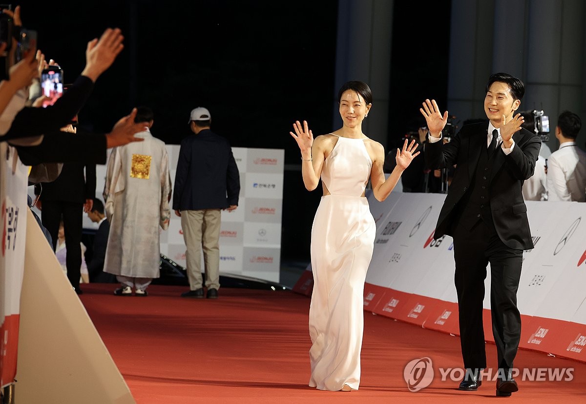 司会を務めた女優ソ・ヒョヌと俳優キム・シンロク=30日、全州(聯合ニュース)