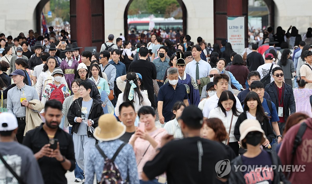 観光客などで賑わう10月9日の景福宮の様子=(聯合ニュース)